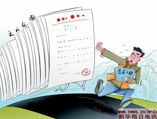 2017年年底(di),在湖南湘潭市某區縣(xian),一位基層(ceng)干部(bu)指著辦公(gong)室里的(de)3個箱子對《新(xin)華每(mei)日電訊》記者說,“你看(kan),上級部(bu)門(men)考(kao)核我們3個項目(mu),每(mei)一項都要準備(bei)大量臺賬(zhang)、文檔和匯(hui)報材料。”