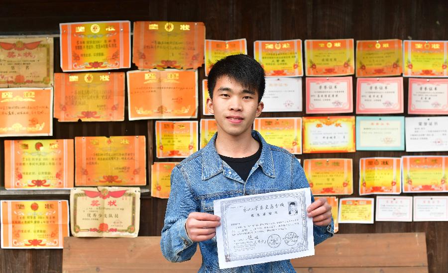 他家是貧困戶,父母打零工掙錢供兒子上學。