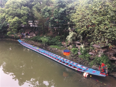 昨日,距(ju)翻船(chuan)事(shi)故發生地百余米外,一艘龍舟停在桃花江邊。