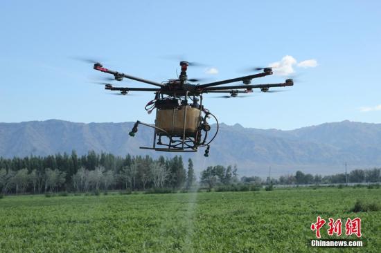 這兩天:新疆農民利用高科技產品飛機對農作物開展空中噴灑農藥。飛機防治所需藥量比地面防治減少20%,在減少浪費的同時,也將減少土地藥物殘留,減輕土壤污染。哈那提 攝