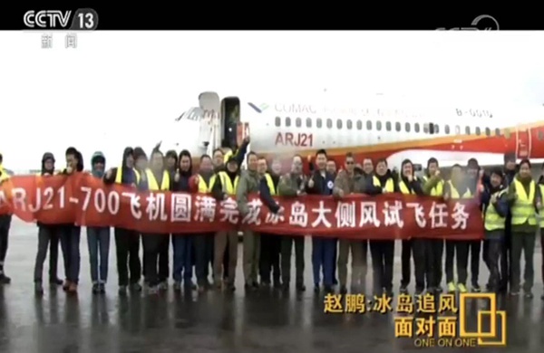 在ARJ21-700取得適航證之前,飛機曾先后4次前往嘉峪關進行側風試驗。當時獲得的抗側風飛行試驗數據為22節,也就是6級風速。但是,ARJ21-700抗側風能力的設計目標值是30節側風條件下起飛和27節側風條件下著陸。經過充分調研和大量協調準備,中國商飛公司決定,ARJ21-700前往冰島凱夫拉維克國際機場開展大側風包線擴展審定試飛。