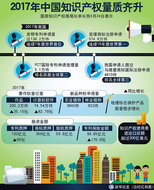 此前,習近平主席在博鰲亞洲論壇2018年年會開幕式上發表主旨演講時指出,“加強知識產權保護。這是完善產權保護制度最重要的內容,也是提高中國經濟競爭力最大的激勵。”