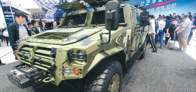 4月25日,擁有自主知識產權的軍用版東風猛士亮相北京車展。龍巍攝(人民視覺)