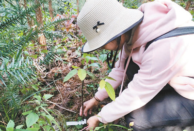 圖為科研人員對回歸野外的滇桐采取保護措施。楊 靜攝