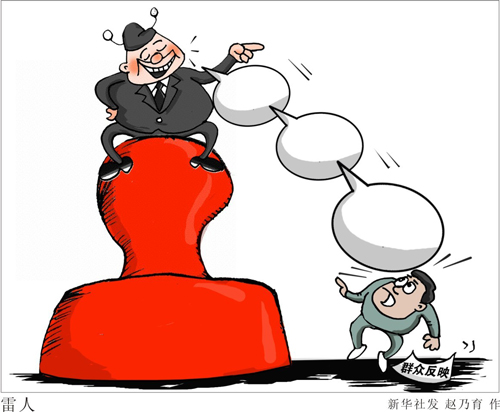 其(qi)二,遮丑(chou)關。“家丑(chou)不可外揚”思維作(zuo)祟,怕違法亂紀行(xing)(xing)為曝光(guang)影響(xiang)地(di)方形(xing)象(xiang)而護短、包(bao)庇。在不少(shao)侵害群(qun)(qun)眾(zhong)利益的行(xing)(xing)為中,一些政(zheng)府部(bu)門(men)或多(duo)或少(shao)充當了(le)(le)幫兇(xiong)。只(zhi)要群(qun)(qun)眾(zhong)忍氣吞聲(sheng),這(zhe)些行(xing)(xing)為就不了(le)(le)了(le)(le)之。一旦群(qun)(qun)眾(zhong)投訴引發(fa)輿論關注,當地(di)政(zheng)府害怕曝光(guang)影響(xiang)地(di)方形(xing)象(xiang)甚(shen)至“烏紗帽”,就派出各路人馬“游說(shuo)”。這(zhe)些干部(bu)接待上(shang)訪群(qun)(qun)眾(zhong)時(shi)先表示同情和理解(jie),再以“大(da)局意識”進行(xing)(xing)說(shuo)教,最終(zhong)提出賠錢(qian)了(le)(le)事。一旦“說(shuo)不通”,就“放狠話”“玩(wan)拖延”,甚(shen)至威脅。