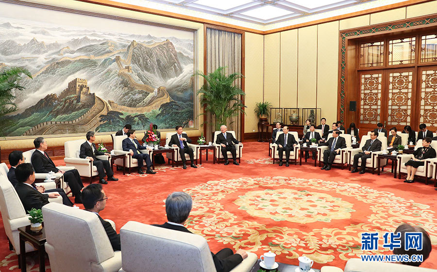 5月3日,全國人大常委會委員長栗戰書在北京人民大會堂會見日本文部科學大臣林芳正率領的日中友好議員聯盟代表團。 新華社記者 龐興雷 攝