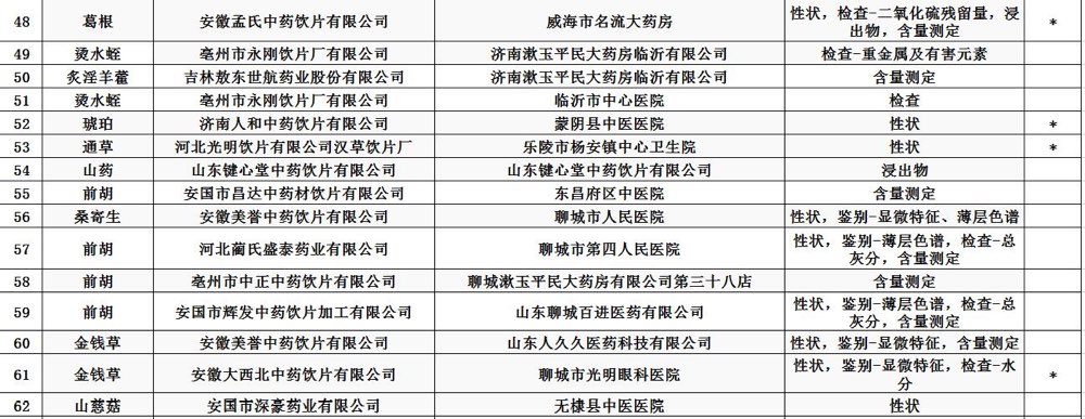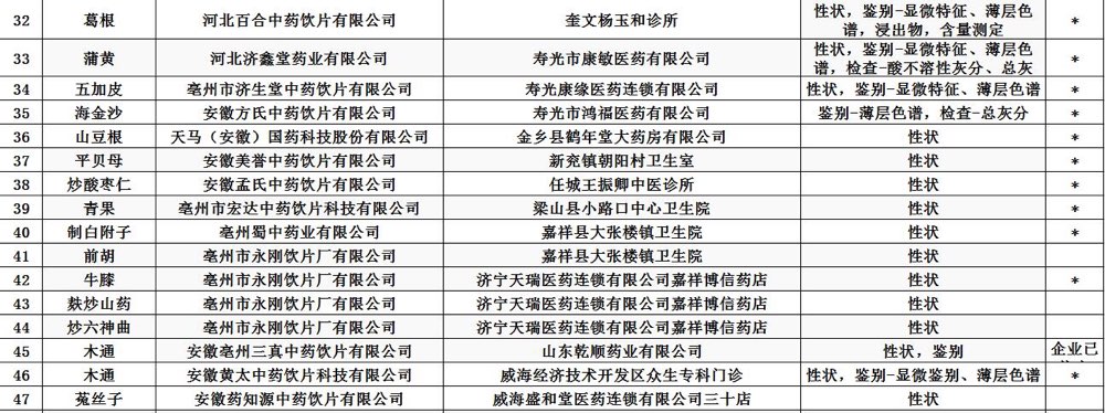 經濱州市食品(pin)藥(yao)品(pin)檢(jian)驗(yan)檢(jian)測中(zhong)心等(deng)14家(jia)藥(yao)品(pin)檢(jian)驗(yan)機構(gou)檢(jian)驗(yan),標(biao)示(shi)為河北凱諾(nuo)制藥(yao)有(you)(you)限(xian)(xian)公司(si)等(deng)2家(jia)企(qi)業(ye)生產(chan)(chan)的(de)2批(pi)次藥(yao)品(pin),標(biao)示(shi)為金芍堂中(zhong)藥(yao)飲片(pian)有(you)(you)限(xian)(xian)公司(si)等(deng)47家(jia)企(qi)業(ye)生產(chan)(chan)的(de)70批(pi)次中(zhong)藥(yao)飲片(pian)不合格。
