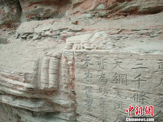圖為在大足石刻首次發現宋代紙幣“交子”造像。 鄧啟兵 攝
