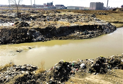 4月7日,天義鎮崗崗營子村,西遼河上游的老哈河從垃圾場中間流過。(新華社記者 王靖 攝)