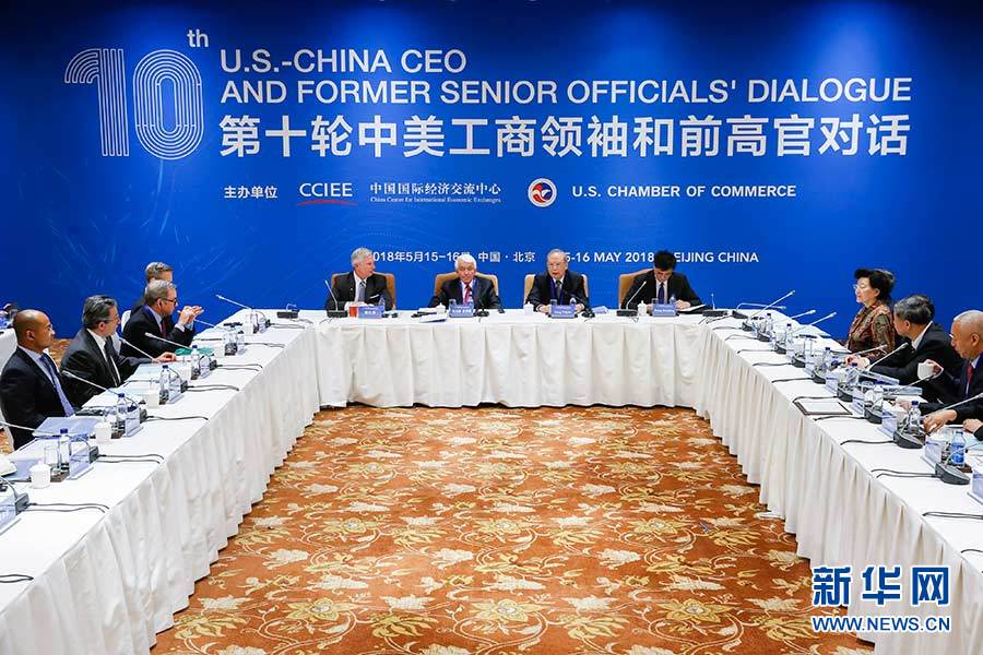 5月15日,第十輪中美工商領袖和前高官對話開幕式在北京舉行。新華社記者 沈伯韓 攝