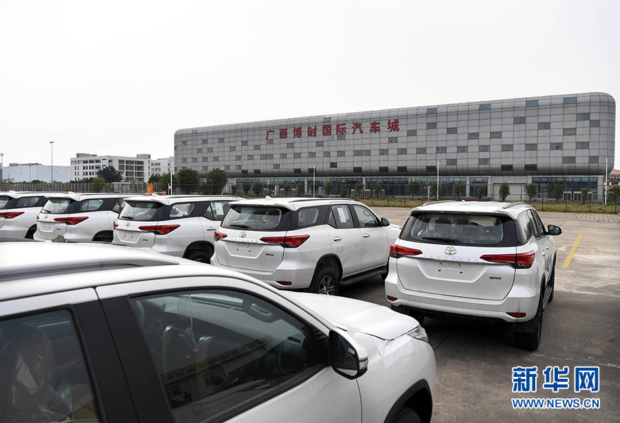 停放在廣西欽州保稅港區國際汽車城外的到岸進口整車(2017年4月13日攝)。新華社記者 申宏 攝