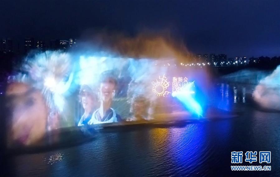 市民在貴陽市觀山湖公園內體驗數谷之夜活動中的水幕電影(5月22日攝)。新華社記者劉續 攝