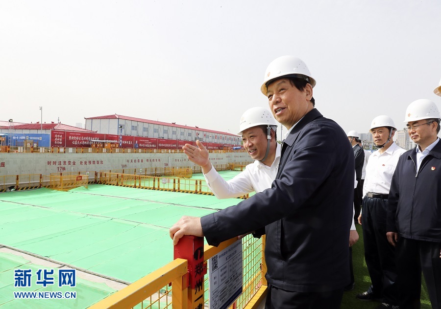 5月24日至28日,中共中央政治局常委、全國人大常委會委員長栗戰書在河南檢查大氣污染防治法實施情況。這是5月27日,栗戰書在鄭州市軌道交通4號線龍湖中環路站建設工地檢查。新華社記者丁林攝