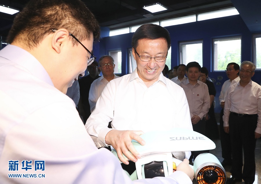 6月19日,中共中央政治局常委、國務院副總理韓正在天津市調研京津冀協同發展工作。這是韓正考察天津深之藍水下新視界科技有限公司。新華社記者 丁林 攝