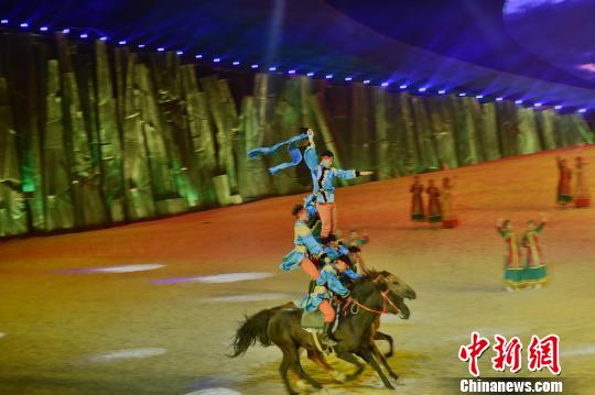 圖為《蒙古馬》實景劇演出現場,氣勢恢宏。翟璐 攝