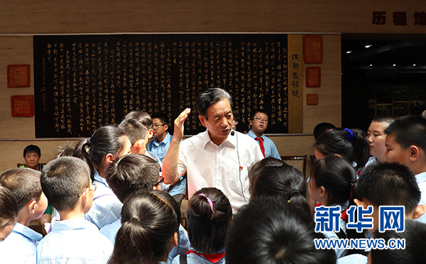 徐文濤為參觀的小學生講解黨史軍史(7月16日攝)。 新華社發(高磊攝)