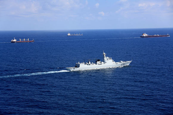 執行首批任務期間,海口艦巡航亞丁灣。