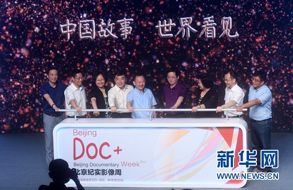 8月3日,嘉賓在開幕式上共同啟動第二屆北京紀實影像周。新華社記者金良快攝