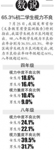 《義務教育質量(liang)監測報(bao)告(gao)(gao)》指出,學(xue)生(sheng)視(shi)(shi)力(li)不(bu)良問(wen)(wen)題(ti)突出,四年級(ji)、八年級(ji)學(xue)生(sheng)視(shi)(shi)力(li)不(bu)良檢(jian)出率(lv)(lv)(lv)分別為(wei)36.5%和(he)65.3%。實際(ji)上,不(bu)僅(jin)(jin)僅(jin)(jin)只有報(bao)告(gao)(gao)中(zhong)義務教育的(de)學(xue)生(sheng)存在視(shi)(shi)力(li)問(wen)(wen)題(ti),我(wo)國(guo)(guo)青少年視(shi)(shi)力(li)的(de)整體(ti)情況也十分不(bu)樂觀。根據世界衛生(sheng)組織的(de)最新(xin)研究報(bao)告(gao)(gao),目前(qian)中(zhong)國(guo)(guo)近(jin)視(shi)(shi)患者人數多達6億。其中(zhong)我(wo)國(guo)(guo)初高中(zhong)生(sheng)和(he)大學(xue)生(sheng)的(de)近(jin)視(shi)(shi)率(lv)(lv)(lv)均已超過七成。我(wo)國(guo)(guo)青少年近(jin)視(shi)(shi)率(lv)(lv)(lv)已高居世界第一(yi)(yi)。相比之下(xia),美國(guo)(guo)青少年的(de)近(jin)視(shi)(shi)率(lv)(lv)(lv)約為(wei)25%,澳大利亞僅(jin)(jin)為(wei)1.3%,德國(guo)(guo)的(de)近(jin)視(shi)(shi)率(lv)(lv)(lv)一(yi)(yi)直控制在15%以下(xia)。