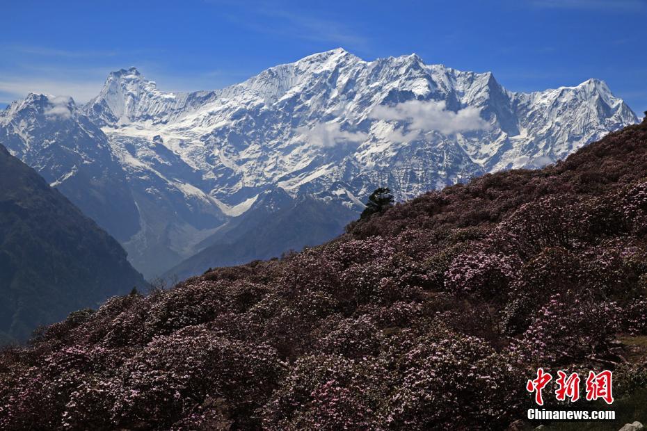 吉隆溝給人最大的感受是驚(jing)訝于造物的神奇,讓(rang)四季并存(cun)在這狹小的山(shan)谷間。峽(xia)谷綠樹成蔭,恬(tian)靜的村(cun)莊被綠樹環抱著,不(bu)遠處(chu)能(neng)清楚地看見若隱若現(xian)的雪山(shan)。圖為杜鵑花與(yu)尼泊爾朗(lang)塘雪山(shan)交相輝映。 楊建(jian) 攝