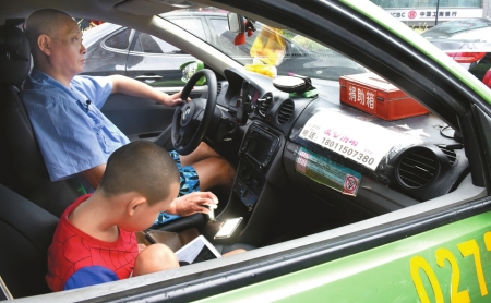 從2歲多到6歲,四年時間,小偉把出租車當成“家”,無聊時玩平板電腦,累了就靠在座椅上睡。