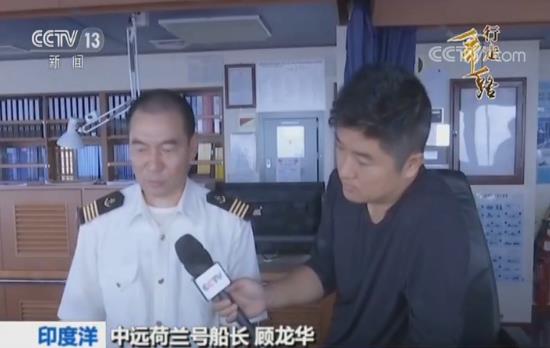 記者:“這里是裝載著超過11000多個集裝箱,正沿著海上絲綢之路歐洲線一路向西航行的中遠荷蘭號集裝箱貨輪。從上個月的28日上海出發以來,現在,我們已經行駛到了到了印度洋的海面上。在這十多天的航行中,給我印象最深的就是即便是像現在已經行駛在大洋之中航行,我們的荷蘭號也并不孤獨。大家看我們身后,一艘和荷蘭號幾乎同等規模,甚至是比我們還要大一些的集裝箱貨輪,也在這條絲路航線和我們并行航行著。 ”