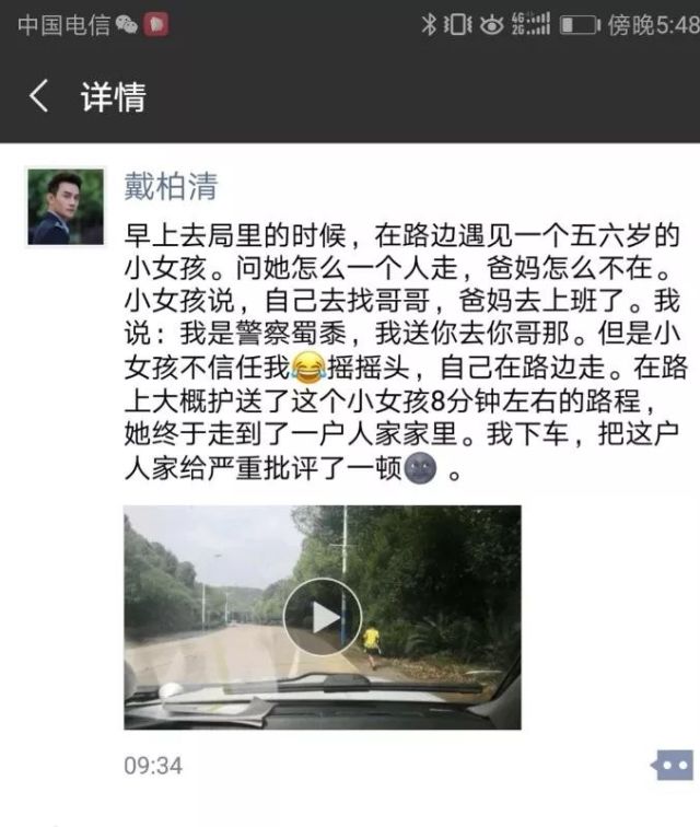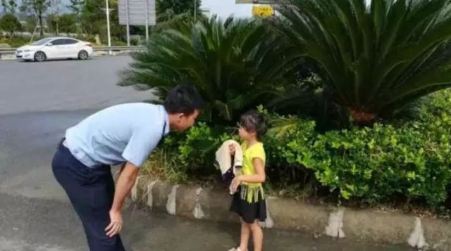 因為女(nv)孩很(hen)小,再加上路(lu)面(mian)車輛很(hen)多,戴柏清(qing)不放心,他和同事放慢車速,跟在后面(mian)默默護(hu)送。
