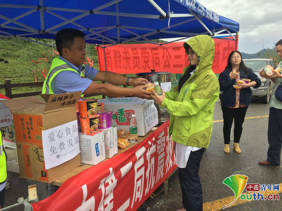 震后第二天(tian),得知九(jiu)寨(zhai)(zhai)溝(gou)(gou)還有(you)大量游客沒(mei)有(you)轉移,項目部3名黨員立(li)即奔赴(fu)九(jiu)寨(zhai)(zhai)溝(gou)(gou),在那(nei)里設立(li)了“愛心(xin)服(fu)務站”,為受災民眾、武警,交警和游客,準(zhun)備了足夠數量的(de)便攜(xie)式氧(yang)氣瓶、藥品、食品、礦泉水(shui)(shui)等物(wu)資,還特意(yi)早早燒好開水(shui)(shui),放在保溫桶里。一天(tian)里,他們救助近200人(ren)次。