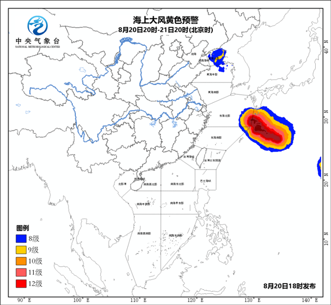 另外,受“溫比亞”變性為溫帶氣旋的影響,20日白天至夜間,渤海、渤海海峽、黃海北部海域、黃海中部偏西海域將有9~10級、陣風11~12級的大風,黃海中部偏東海域將有8級、陣風9~10級的偏南風。