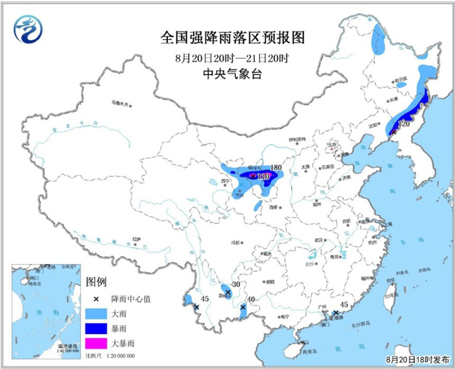 孫軍:西北地區由于受高空槽和低層切變影響,西北地區西側、北側冷空氣與南側的濕暖氣流交匯,形成西北渦旋。由于冷暖氣流兩者強度均較強,水汽輸送條件較好,預計8月20日夜間至21日夜間,西北地區中東部將有一次強降雨過程,其中甘肅中東部、寧夏、陜西、內蒙古河套偏南部分地區有大雨或暴雨,局地有大暴雨。