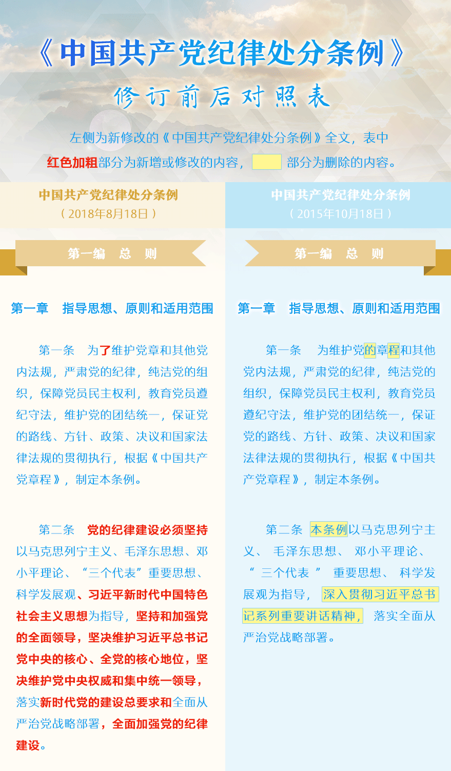 《中國共產黨紀律處分條例》修訂前后對照表-新華網