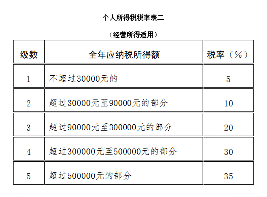 “(二)經營所得,適用百分之五至百分之三十五的超額累進稅率(稅率表附后);