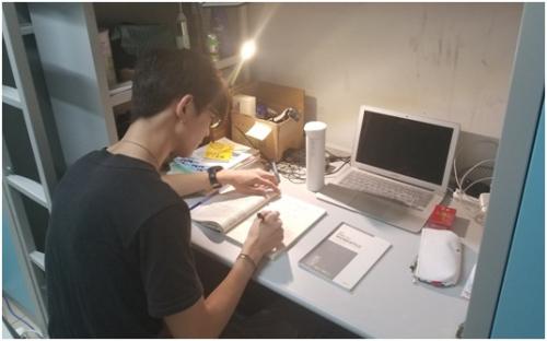 張天宇在宿舍備戰研究生考試。受訪者供圖