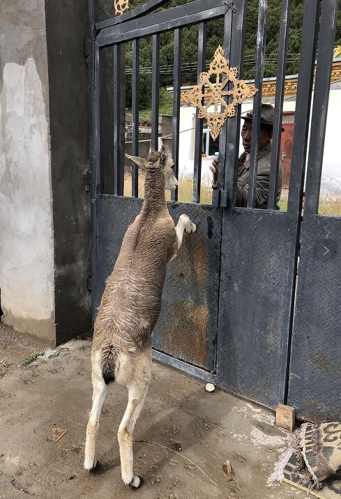 68歲的(de)雜多縣昂賽鄉(xiang)老獸醫求軍(jun)結束(shu)了一天的(de)工作,背著(zhu)(zhu)沉重的(de)藥箱回(hui)到家中,關上庭院大(da)(da)門的(de)一刻,一只可愛的(de)小巖羊突(tu)然躥了出來,趴在(zai)大(da)(da)門上撒著(zhu)(zhu)嬌,不(bu)愿(yuan)離去。