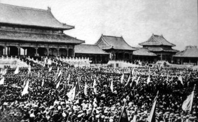 圖示:1945年9月,北平(今北京)各界民眾慶祝抗戰勝利。