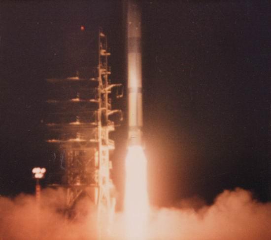 圖示:1970年4月24日,運載我國第一顆人造地球衛星的“長征”一號運載火箭成功發射