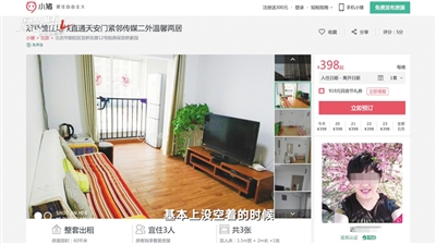 位(wei)于北京東五(wu)環外的(de)燕保雙橋家園公租房項目于2015年(nian)(nian)投放。該小(xiao)區5號樓2單元508室的(de)承租人遲(chi)女(nv)士,將(jiang)所承租的(de)60平(ping)方米的(de)小(xiao)兩居(ju)改(gai)成日租房,至今已經(jing)(jing)營(ying)兩年(nian)(nian)了(le)。9月(yue)19日,記者登錄小(xiao)豬、途(tu)家、榛果3個民(min)宿(su)預訂網站,記錄顯示,遲(chi)女(nv)士經(jing)(jing)營(ying)的(de)民(min)宿(su)近期價格(ge)為每晚398至498元不等(deng),早在2017年(nian)(nian)1月(yue)就有了(le)住(zhu)戶評價。