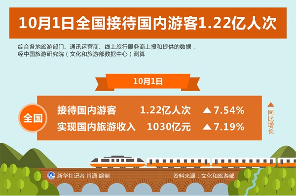 圖表:10月1日全國接待國內游客1.22億人次 新華社記者 肖瀟 編制