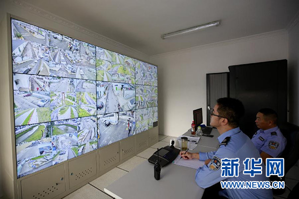 10月9日,工作人員在吳介巷美麗鄉村監控室值班。新華社記者 張建松 攝