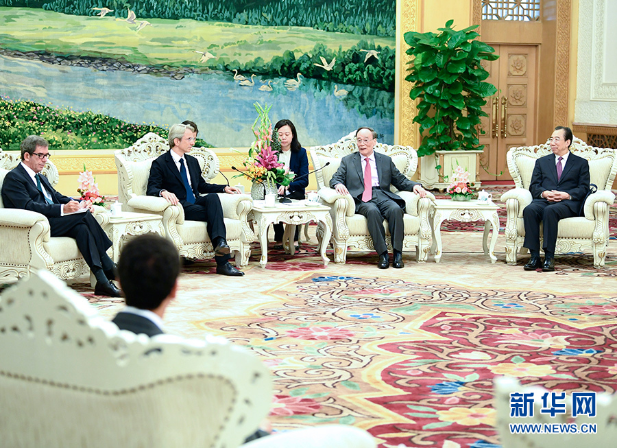 10月15日,國家副主席王岐山在北京人民大會堂會見出席第六屆中法青年領導者論壇的雙方代表。新華社記者 燕雁 攝