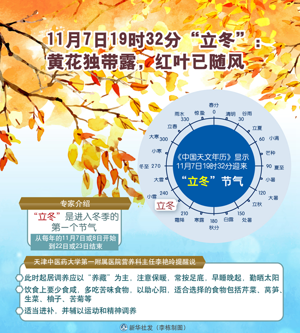 11月7日19時32分“立冬”:黃花獨帶露,紅葉已隨風 新華社發 李棟 制圖