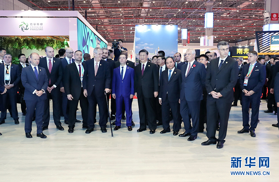 新華社上海11月5日電(記者李忠發、周蕊)國家主(zhu)席習近平5日在(zai)上海同出席首屆中國國際進口博(bo)覽會的外(wai)國領(ling)導人共同巡館。