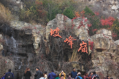 今年10月17日,航拍平谷區金海湖漫山遍野的紅葉。平谷是全市生態涵養區7個區之一。