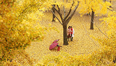 深秋新疆塔里木河源頭金色胡楊景色唯美