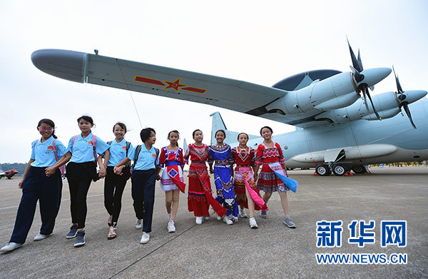 藍天春蕾女童在航展現場參觀(11月10日攝)。新華社發(陳藝 攝)
