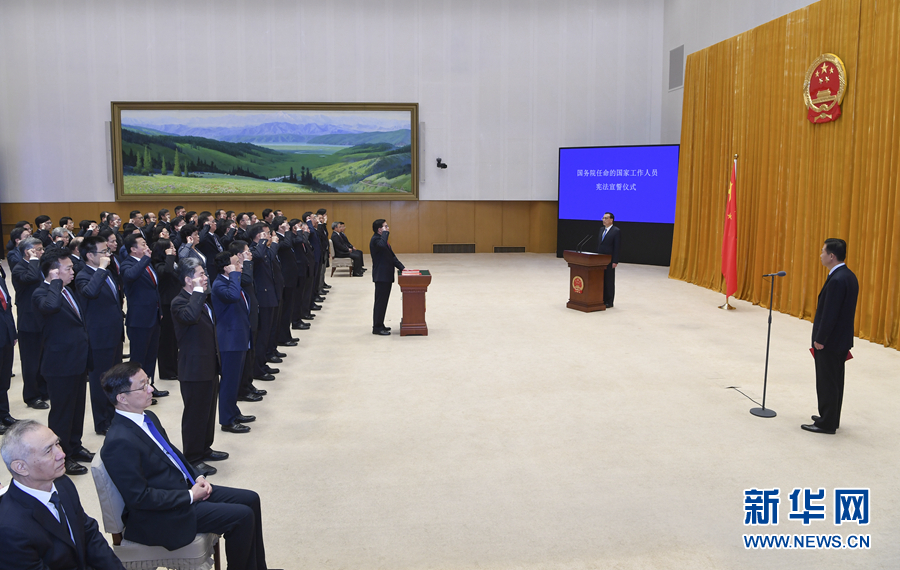 根據(ju)《中華人民共和國(guo)(guo)憲(xian)法》和《國(guo)(guo)務院(yuan)及其各部門任命的國(guo)(guo)家工作人員憲(xian)法宣誓組織辦法》,2018年4月至10月國(guo)(guo)務院(yuan)任命的40個部門和單位的59名負責人依法進行憲(xian)法宣誓。