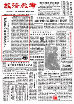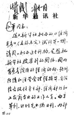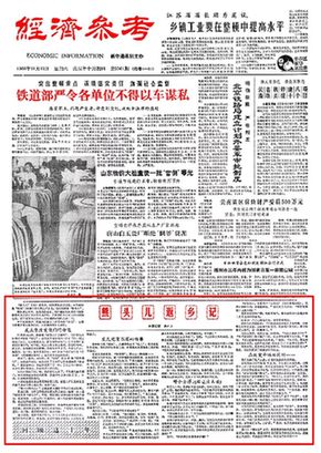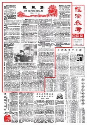 80年代初(chu),改(gai)革(ge)的東(dong)風讓(rang)經濟(ji)建設(she)的熱潮,一(yi)浪高過一(yi)浪,新(xin)華社想辦一(yi)份綜合(he)性經濟(ji)報(bao)紙(zhi),時任新(xin)華社國內部副主(zhu)任的李峰(feng)建議,報(bao)紙(zhi)采用“經濟(ji)參考”作為報(bao)名,第一(yi)可(ke)以有些“神(shen)秘”色彩,第二說話可(ke)以放開(kai)一(yi)些。新(xin)華社黨組采納(na)了他的意見。