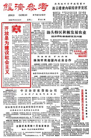 《經濟參考報》在(zai)1984年(nian)10月23日刊發的(de)這(zhe)篇(pian)評論《開放是為建設社會主義》稱,這(zhe)樣(yang)做也會帶來些資本主義,但(dan)這(zhe)并不可(ke)怕,相反它可(ke)以發展生產(chan)力,作為社會主義的(de)補充。如今,這(zhe)樣(yang)的(de)共識已深入人(ren)心,但(dan)在(zai)當年(nian),卻存在(zai)巨大的(de)爭議。