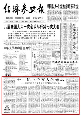 1993年,“國家實行社會主(zhu)義(yi)市場經濟”被寫進了憲法。