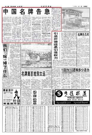 《經濟參考報(bao)》記者走訪發(fa)現(xian),中國名牌(pai)告急,由多方面原因造成:“洋(yang)”牌(pai)子淹(yan)了國產(chan)貨,假“名牌(pai)”砸了真名牌(pai)。
